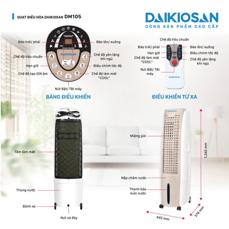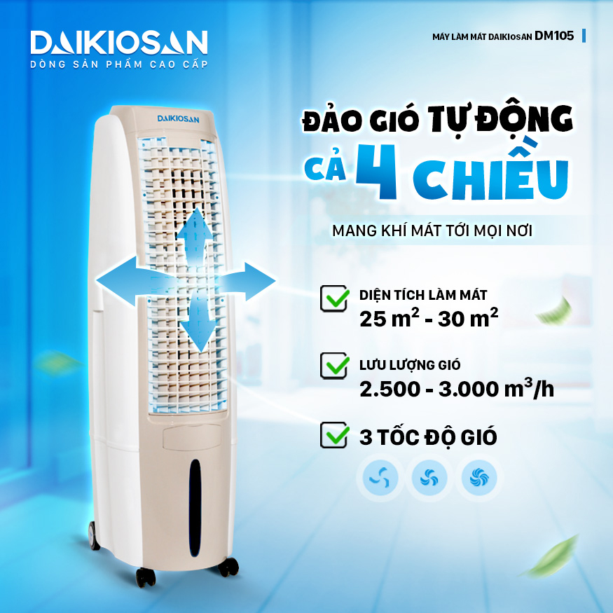 Máy làm mát không khí Daikiosan là một sản phẩm công nghệ cao, tận dụng tối đa phương pháp làm mát bay hơi.