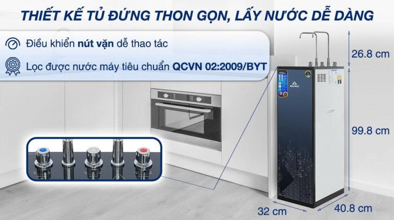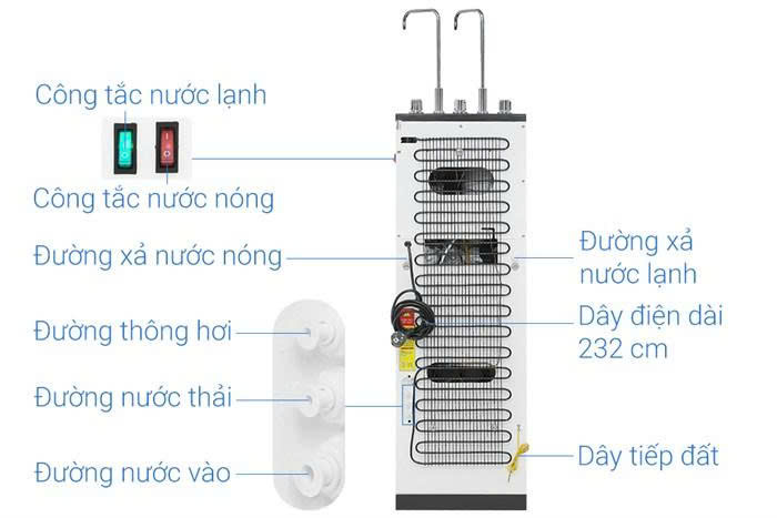 Dung tích bình chứa: Tổng 9 lít (Nước nóng 1 lít, nước lạnh 1.5 lít, nước thường 6.5 lít)