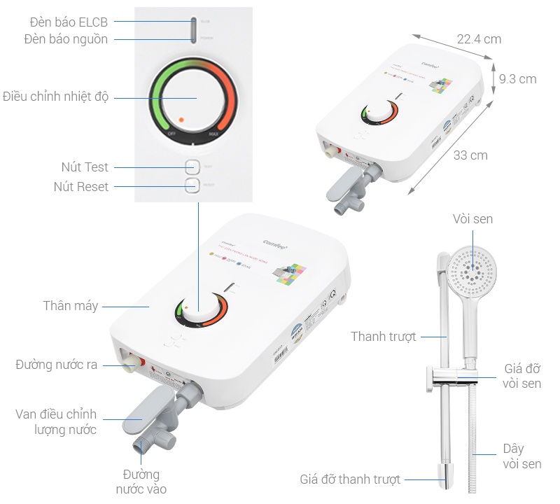 - Công nghệ kiểm soát nhiệt độ của máy tắm nóng trực tiếp Comfee giúp chủ động điều chỉnh công suất làm nóng theo nhu cầu. Mang lại cho bạn cảm giác thoải mái hòa mình cùng làn nước ấm áp theo nhu cầu.
