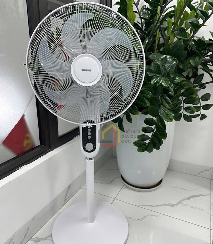 - Quạt đứng Philips CX1220/00 3 tốc độ gió, chế độ xoay 80°, nghiêng 30°, hẹn giờ 0–2 giờ. Công suất 45W, chiều cao từ 112 cm đến 131 cm và độ ồn thấp chỉ 38 dB(A)