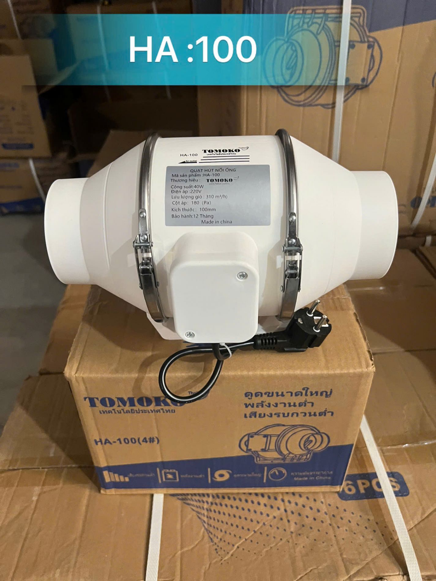 - Quạt hút nối ống Tomoko với thiết kế màu trắng đen tinh tế, sang trọng cùng kích thước nhỏ gọn giúp tiết kiệm diện tích cho hẹ thống thông gió.